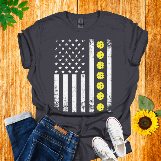 American Yellow Pickleball Flag T-Shirt