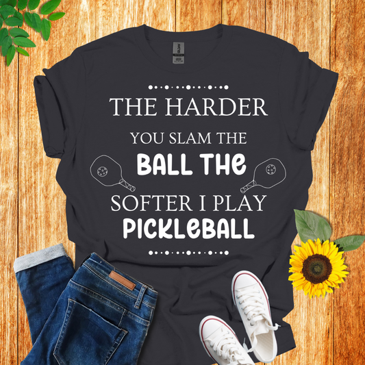 The Harder You Slam The Ball The Softer I Play Pickleball T-Shirt